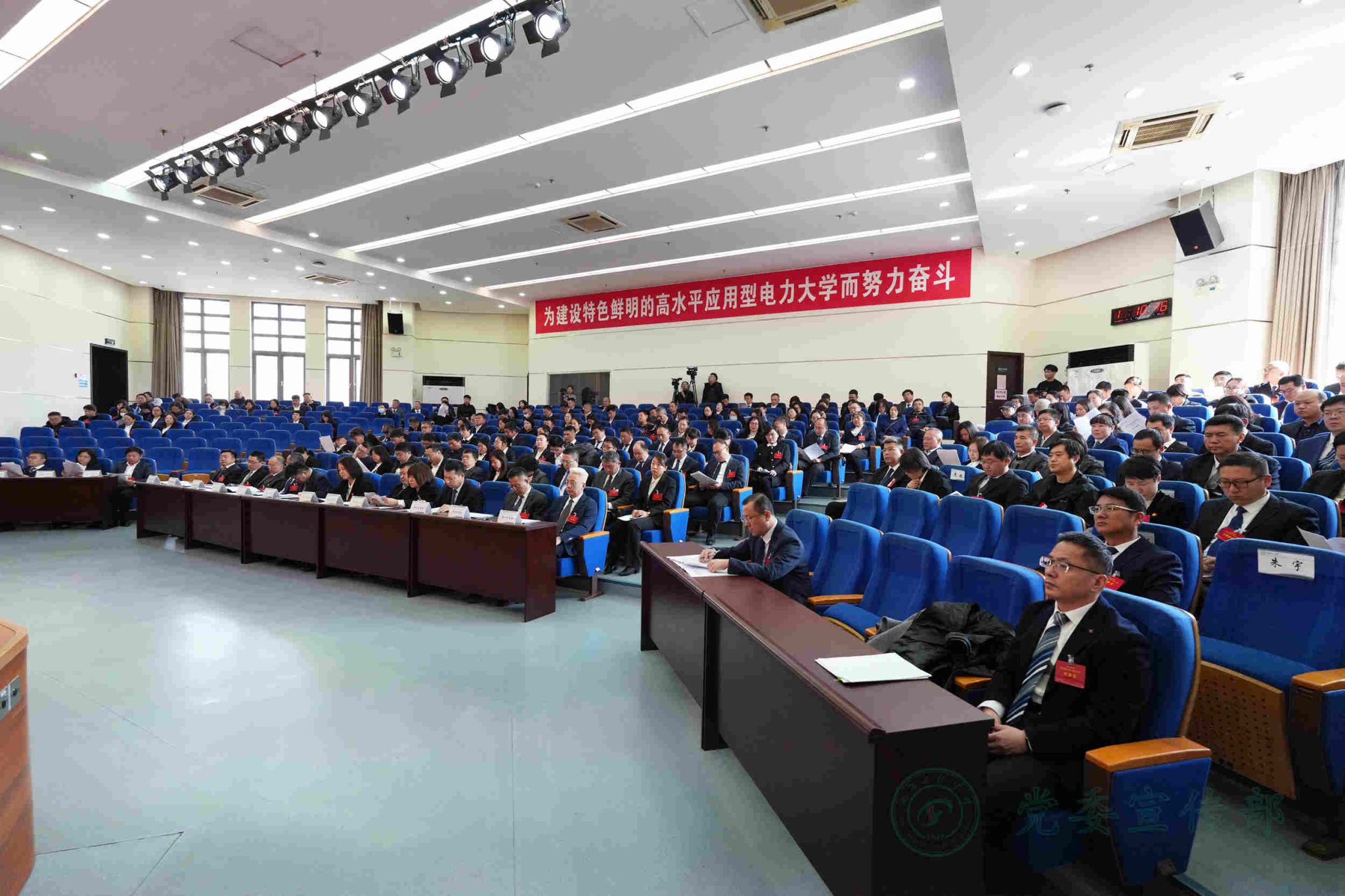 校长王国辉作题为“锚定高水平应用型电力大学目标 奋力谱写学校高质量发展新篇章”的工作报告,全面总结回顾了学校2024年的工作。报告指出,一年来,学校聚焦服务辽宁全面振兴新突破三年行动、聚焦加快建设特色鲜明的高水平应用型电力大学,办学动力切实增强,办学实力持续提升,办学活力不断释放,实现了学校办学质量和综合实力的新跃升。他对学校2025年工作作出系统谋划:一是全面实施“加强理论武装、提升党建水平、推动事业发展”党的建设三大专项行动,持续增强学校办学动力,在以高水平党建推动高质量发展上实现新跃升。二是着力打好“提高教学水平、加强学科建设、服务辽宁振兴”高质量发展三大攻坚战,持续提高服务辽宁振兴的能力和贡献度,走稳走实高水平应用型电力大学的办学之路。三是用足用好“全面深化改革、加强制度创新、扩大开放办学”内部治理三大关键举措,不断释放学校办学活力,推进学校治理体系和治理能力现代化。他希望全体教职员工,以更加激昂的节奏推进年度重点任务,以更加扎实的步伐投身辽宁全面振兴,以更加坚定的目光聚焦“特色鲜明的高水平应用型电力大学”建设目标,众志成城,携手并肩,共同书写无愧于时代无愧于人民的答卷,奋力谱写beat365英国官方网站高质量发展新篇章。