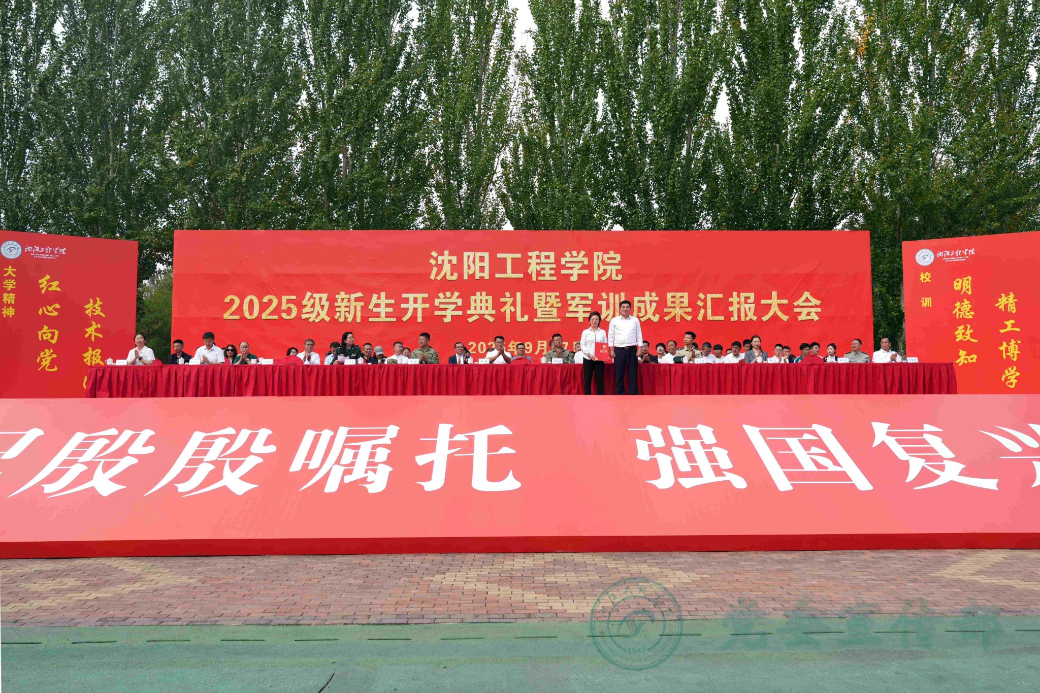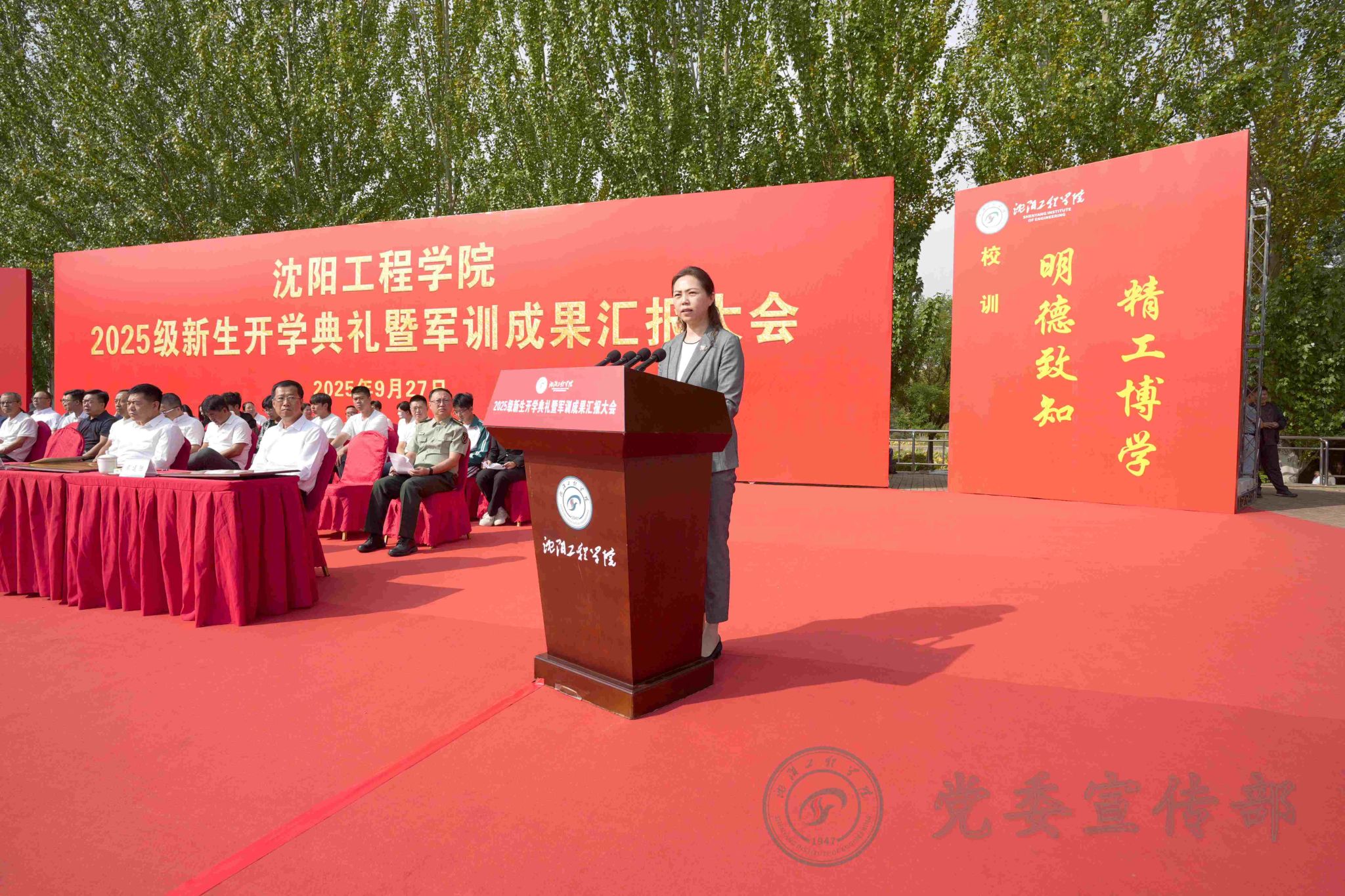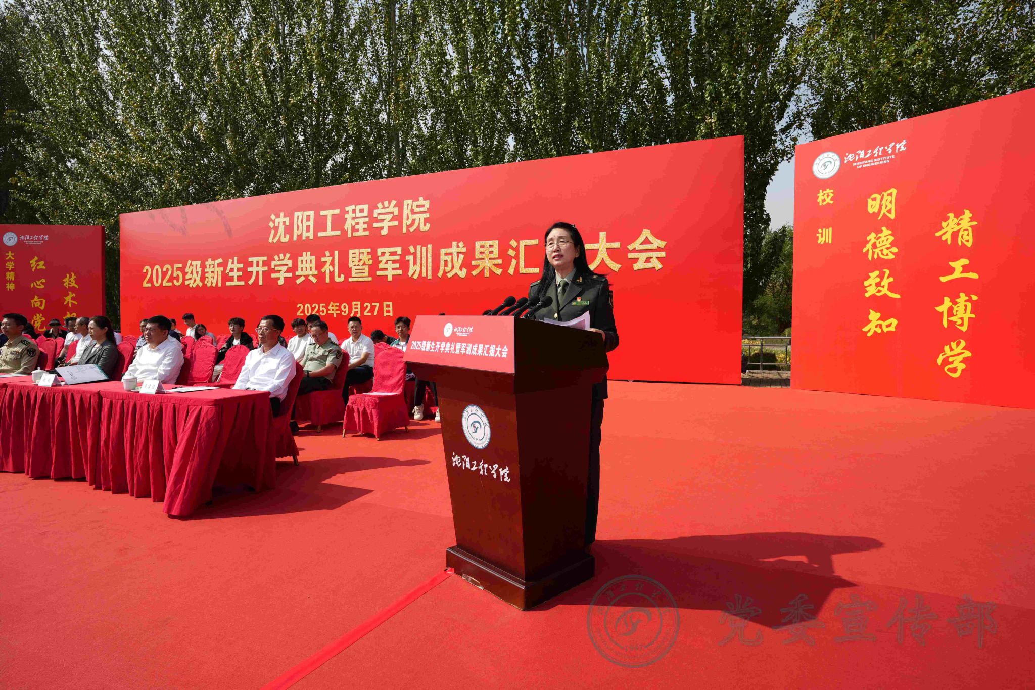 9月27日,学校2025级新生开学典礼暨军训成果汇报大会在体育场举行。辽宁省军区战备建设局军训办主任潘凯旋,沈北新区委常委、沈北新区武装部政委李鹏,中国人民解放军某部少校王天智,北京市海淀区人大代表、中华国际科学交流基金会特聘专家、迈吉客科技创始人CEO兼董事长、学校94级校友伏英娜受邀参加会议。全体在校校领导、党委常委出席大会。大会由党委副书记方鸿志主持。