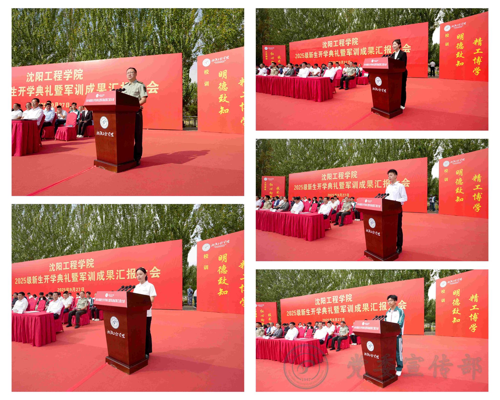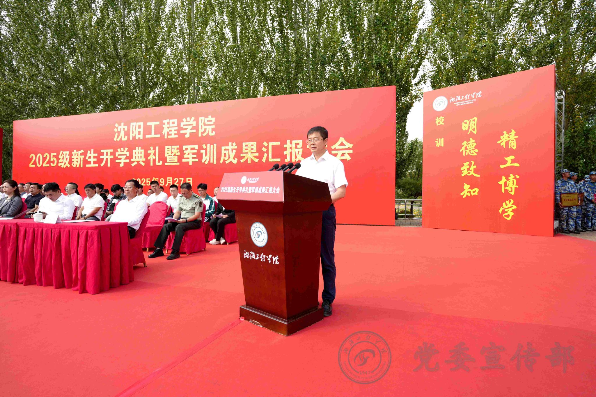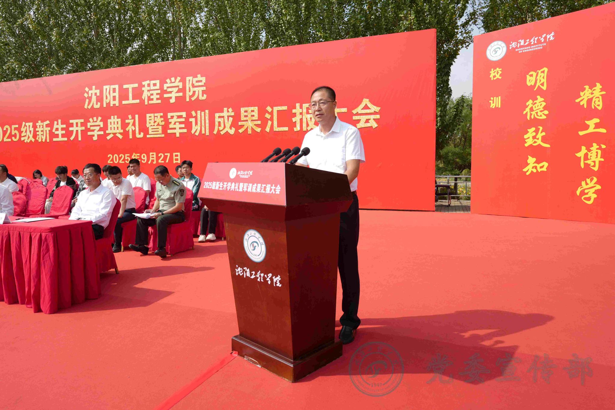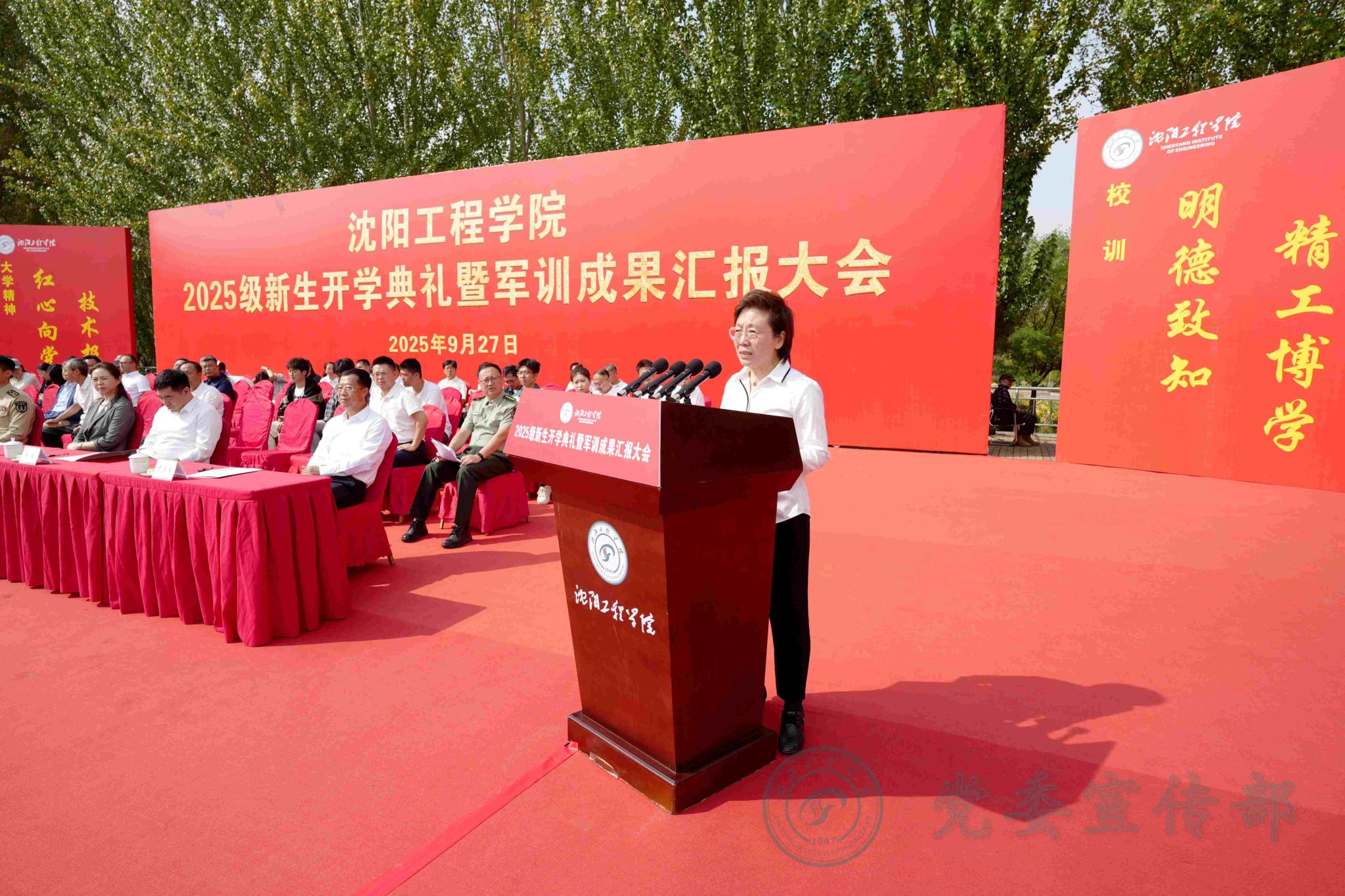 9月27日,学校2025级新生开学典礼暨军训成果汇报大会在体育场举行。辽宁省军区战备建设局军训办主任潘凯旋,沈北新区委常委、沈北新区武装部政委李鹏,中国人民解放军某部少校王天智,北京市海淀区人大代表、中华国际科学交流基金会特聘专家、迈吉客科技创始人CEO兼董事长、学校94级校友伏英娜受邀参加会议。全体在校校领导、党委常委出席大会。大会由党委副书记方鸿志主持。