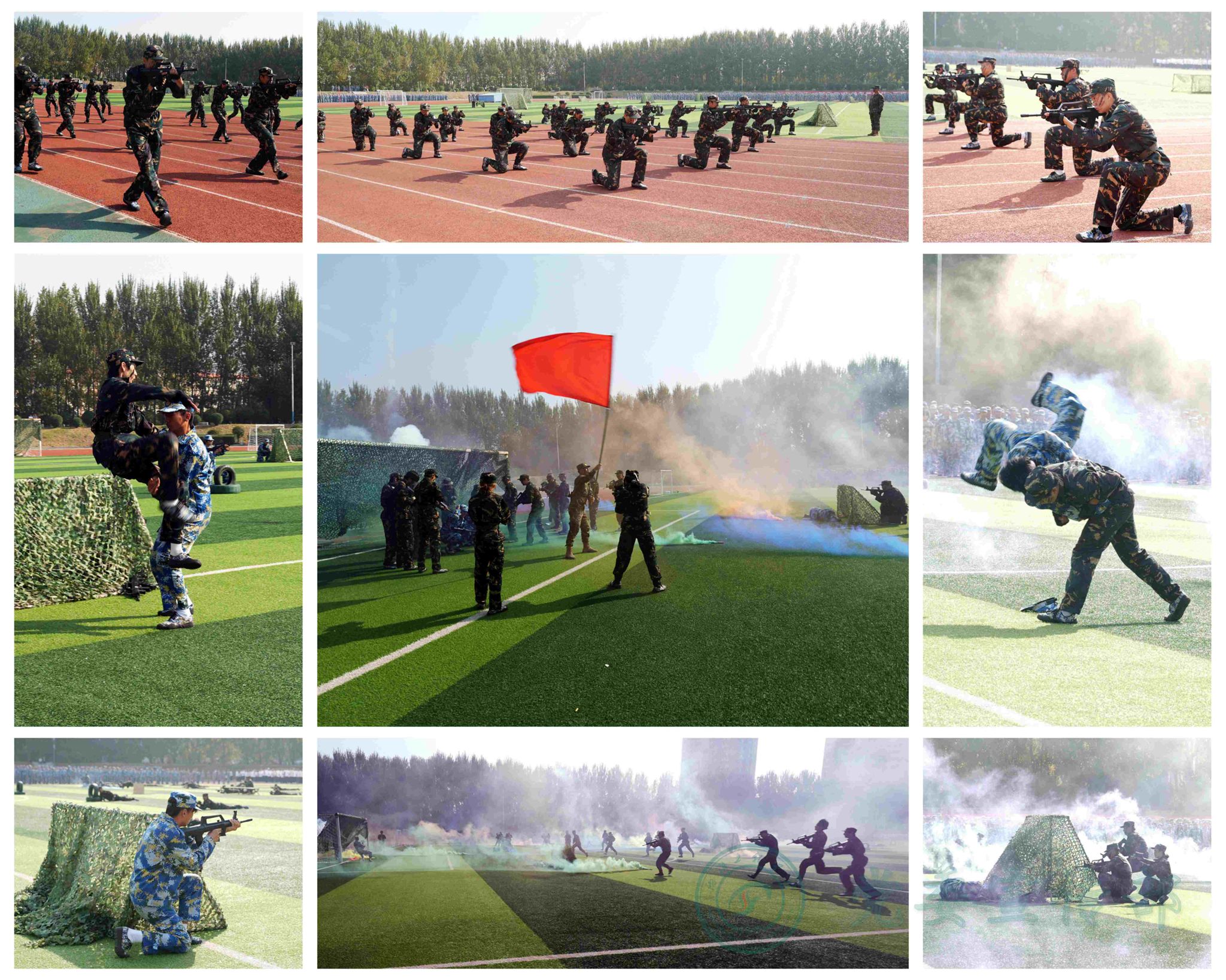伴随着铿锵有力的国歌声,庄严的升国旗仪式拉开了军训成果汇报大会的序幕。军训成果汇报分为军事对抗演练、千人匕首防身操、千人格斗术和分列式四部分。这些表演展现了沈工程青年奋进、团结、拼搏、昂扬的精神风貌。