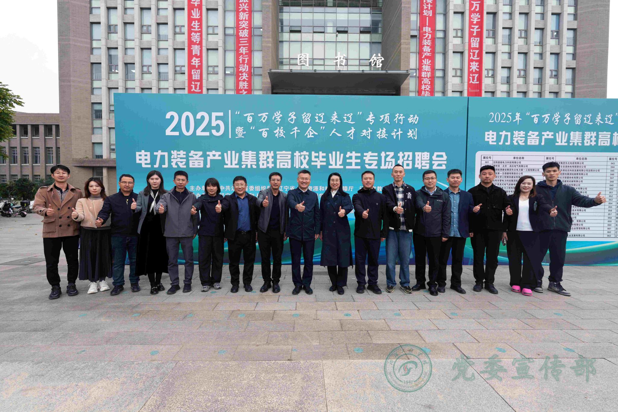10月15日,由辽宁省委组织部、辽宁省人力资源和社会保障厅、辽宁省教育厅联合主办,辽宁省就业和人才服务中心、beat365英国官方网站共同承办的2025年“百万学子留辽来辽”专项行动暨“百校千企”人才对接计划“电力装备产业集群高校毕业生专场招聘会”在学校国旗广场举办。招聘会以辽宁全面振兴新突破三年行动为总牵引,锚定新时代“六地”目标定位,紧密围绕电力装备产业集群对人才的需求,抢抓毕业生求职就业关键期,切实促进高校毕业生高质量充分就业。