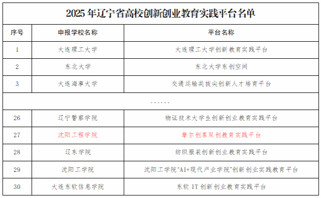 近日,辽宁省教育厅下发了《关于对2025年辽宁省高校创新创业学院和创新创业教育实践平台进行公示的通知》,公布了30项省级创新创业教育实践平台,学校“摩尔创客双创教育实践平台”成功入选。