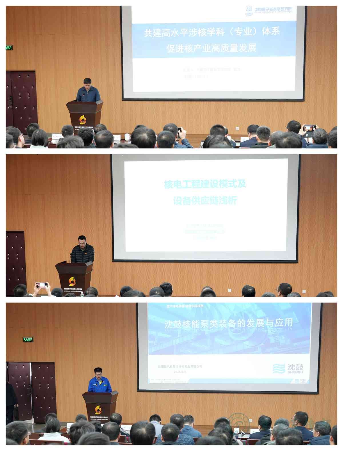 会上,中国原子能科学研究院、沈阳产业技术研究院、沈鼓集团核电泵业有限公司专家分别围绕核学科建设、核电工程与设备供应链、核能装备应用发展作专题报告,为深化高校、科研院所与企业全方位合作建言献策。