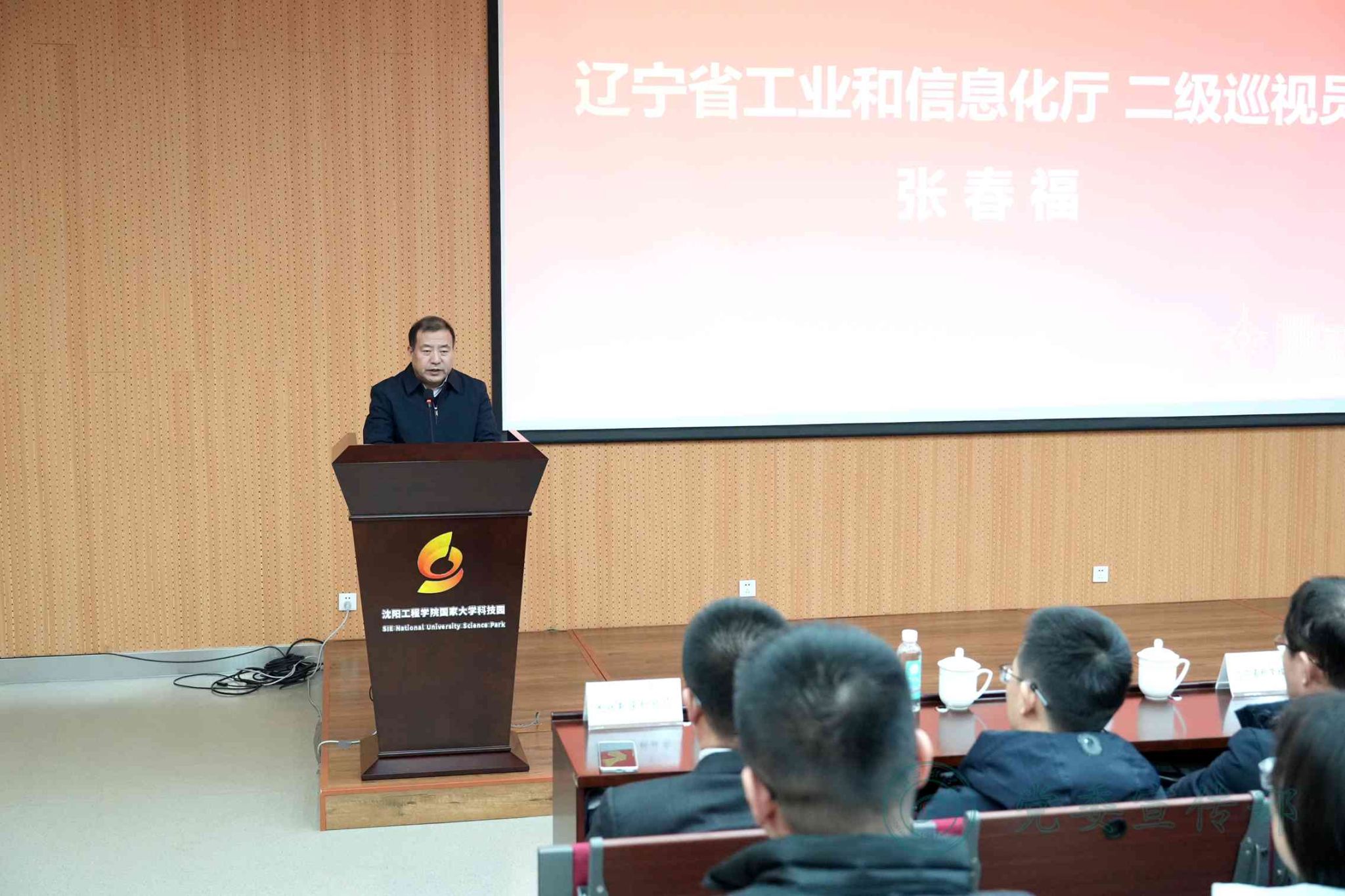 辽宁省工业和信息化厅二级巡视员张春福出席会议并讲话。副校长赵琰出席会议并致辞,党委常委、统战部部长戴建陆介绍工业化院组建情况。