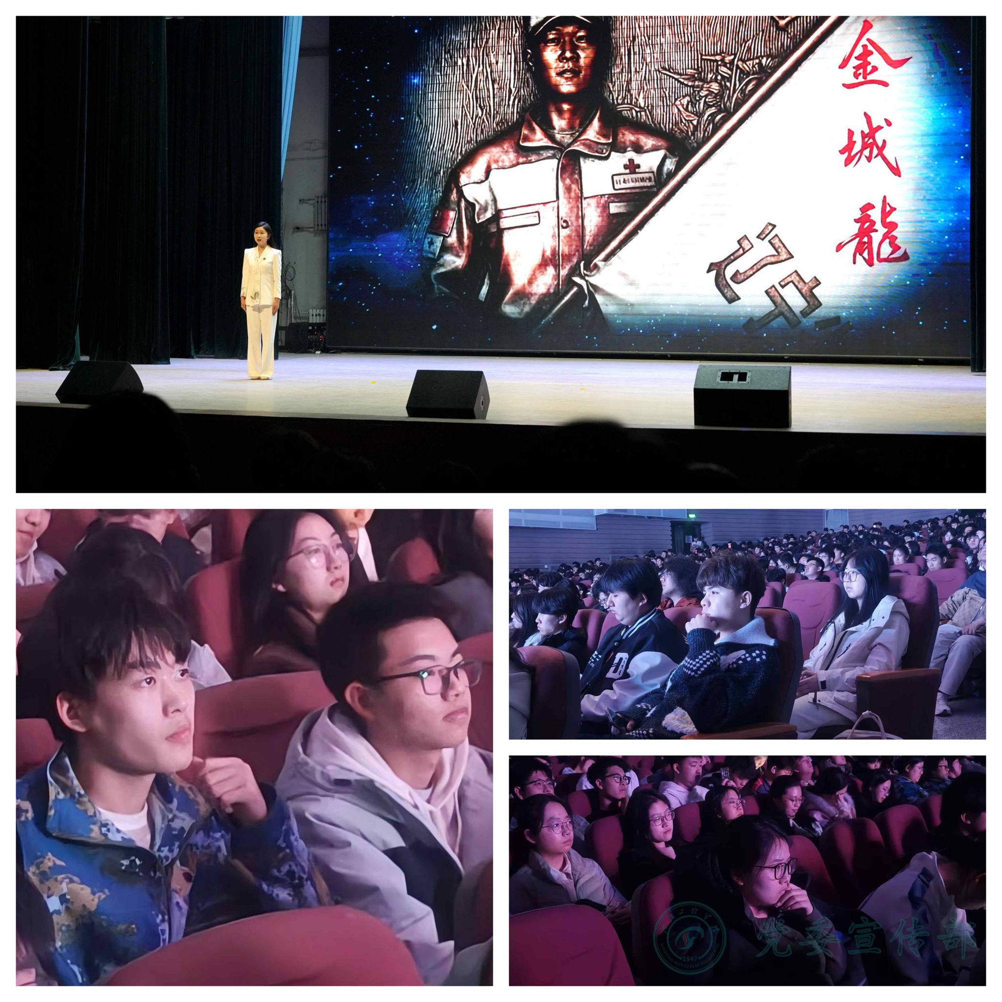 现场气氛庄重热烈,情感深沉饱满,师生眼噙热泪,真切地感受到金城龙信念坚定、矢志报国的思想品格,舍生忘死、挺身而出的英雄气概。