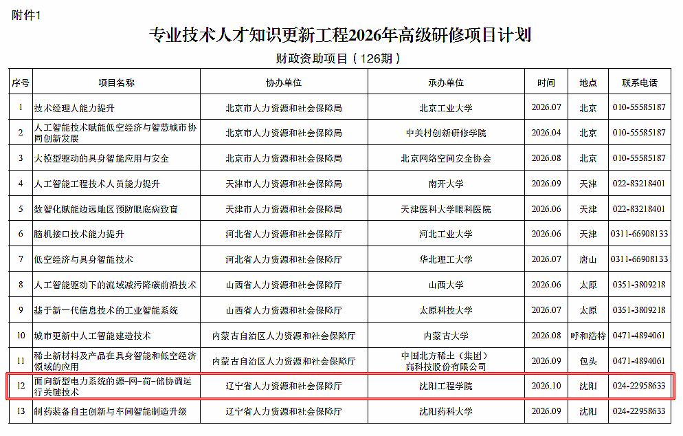 近日,人力资源和社会保障部办公厅印发《专业技术人才知识更新工程2026年高级研修项目计划》(人社厅函〔2026〕35号),beat365申报的“面向新型电力系统的源-网-荷-储协调运行关键技术”项目成功入选财政资助类高级研修项目,是全省仅有的两所获批该类别项目的高校之一。