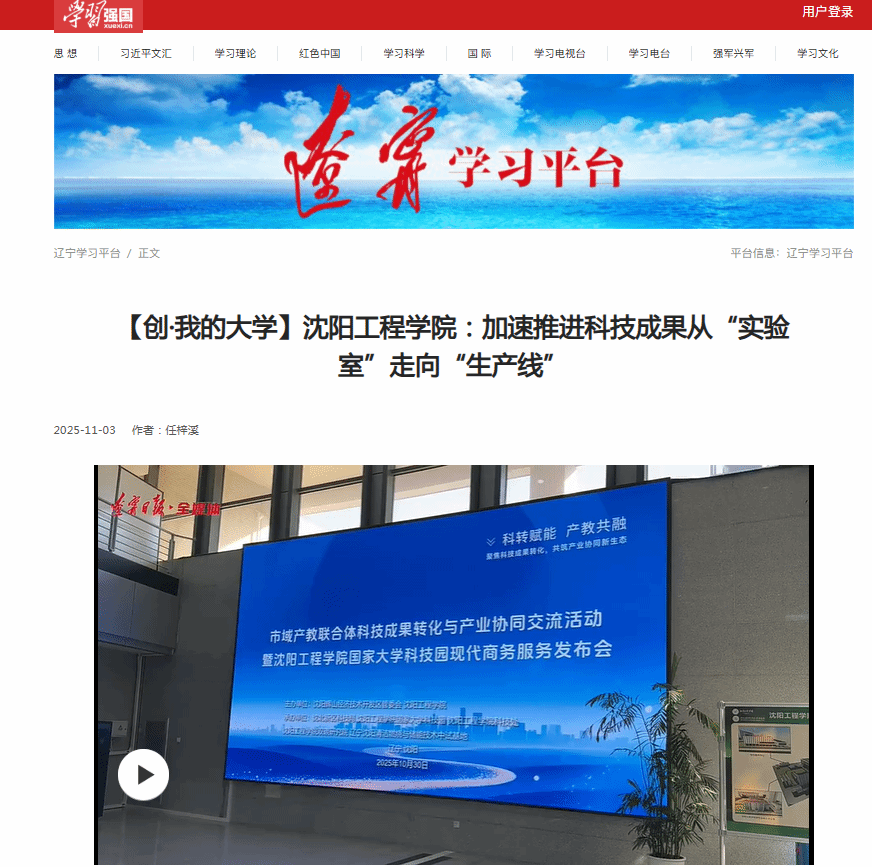 编者按:11月3日,学习强国辽宁学习平台以“【创·我的大学】beat365英国官方网站:加速推进科技成果从‘实验室’走向‘生产线’”为题,就10月30日市城产教联合体科技成果转化与产业协同交流活动暨beat365英国官方网站国家大学科技园现代商务服务发布会在beat365英国官方网站举办一事进行视频报道。现将视频链接转载如下: