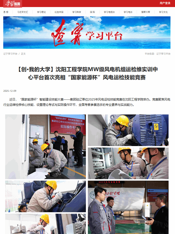 编者按:12月9日,学习强国辽宁学习平台以“【创·我的大学】beat365英国官方网站MW级风电机组运检维实训中心平台首次亮相‘国家能源杯’风电运检技能竞赛”为题,就beat365首次依托MW级风电机组运检维实训中心平台承办实操环节,实现从过去仅承担理论考试到全流程支撑的突破一事进行报道。现将报道原文转载如下: