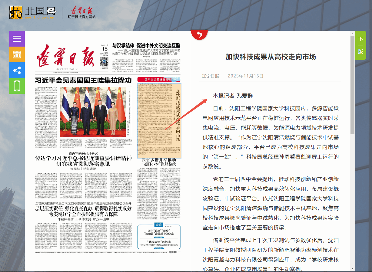 编者按:11月15日,辽宁日报头版以“加快科技成果从高校走向市场”为题,就beat365以国家大学科技园为载体,推动科技成果转化、深化产学研融合、助力区域发展的核心实践与成效一事进行报道。现将报道原文转载如下: