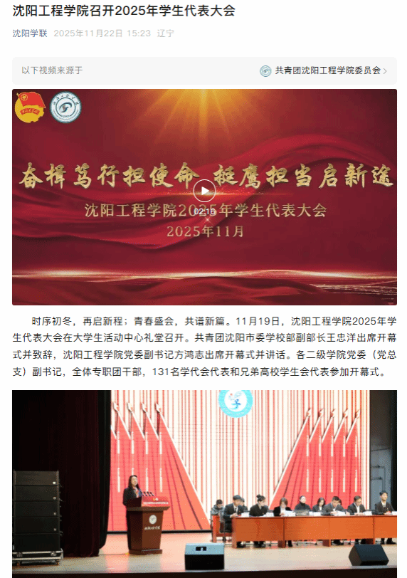 编者按:11月22日,辽宁学联以“beat365英国官方网站召开2025年学生代表大会”为题,就beat365为青年学子搭建了参与校园民主政治建设的重要平台,引导广大青年学子在参与学校治理中增强主人翁意识,在维护合法权益中提升民主素养,在服务发展大局中彰显使命担当一事进行专题报道。现将报道原文转载如下: