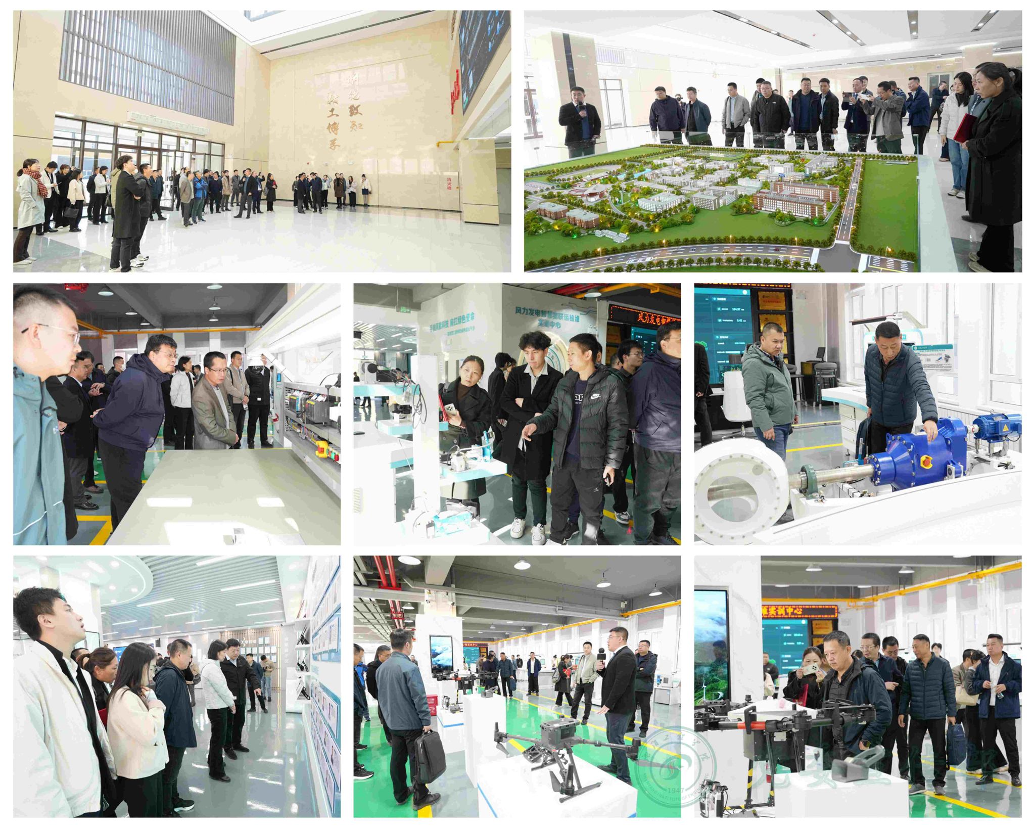 与会嘉宾参观了MW级风电机组运检维实训中心、风力发电智慧物联运检维实训中心,详细了解了实训设备配置、教学场景设计及校企协同实训模式,参观企业对中心的建设水平和实用价值给予高度评价。