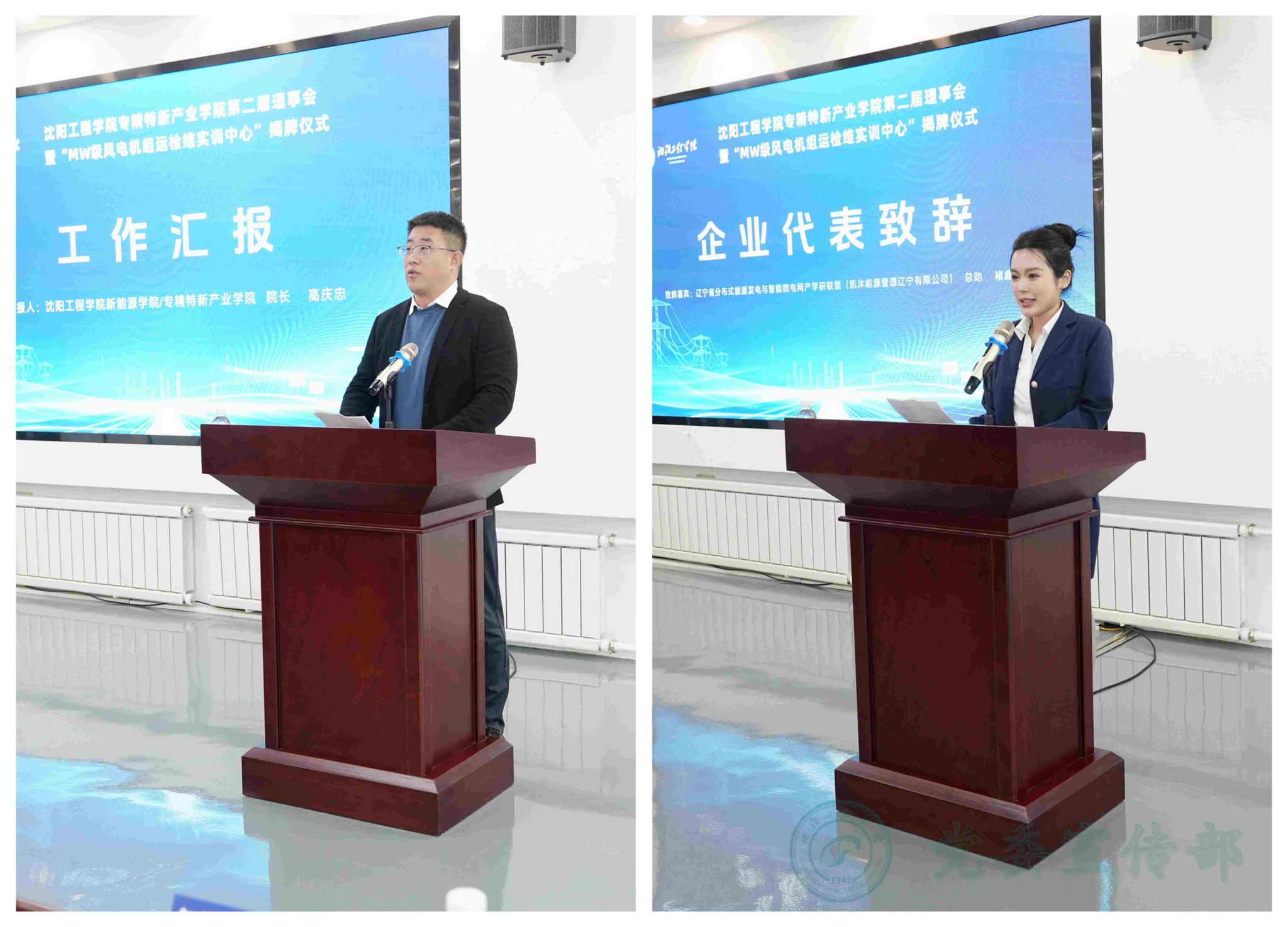 为响应国家清洁能源产业发展与辽宁省企业绿色低碳转型需求,并深化专精特新领域产教融合、校企协同育人,10月30日上午,学校“专精特新产业学院第二届理事会暨MW级风电机组运检维实训中心揭牌仪式”在新型电力系统实训基地举行。学校相关部门负责人、各理事会成员单位代表、企业嘉宾及新能源学院/专精特新产业学院师生代表共同出席活动。